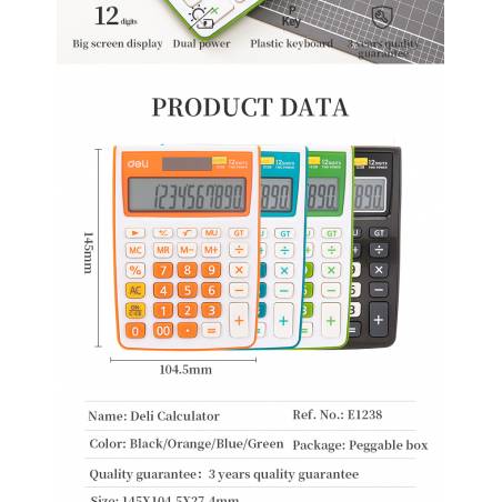 Калькулятор настольный Deli E1238black черный 12-разр.