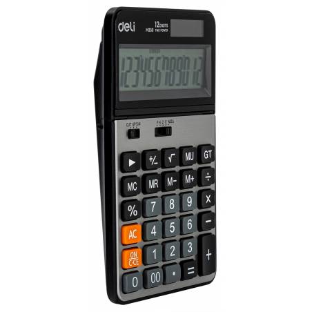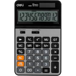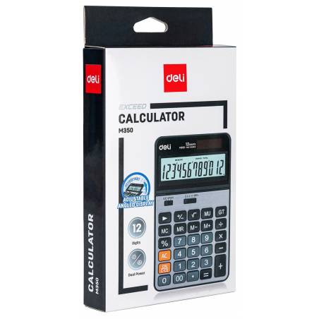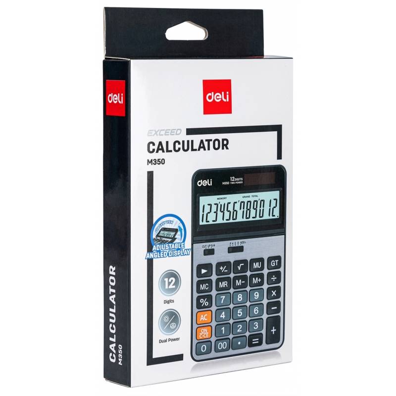 - Калькулятор настольный Deli, EM350, 12 символов, 2 источника питания, металлический, серебристый