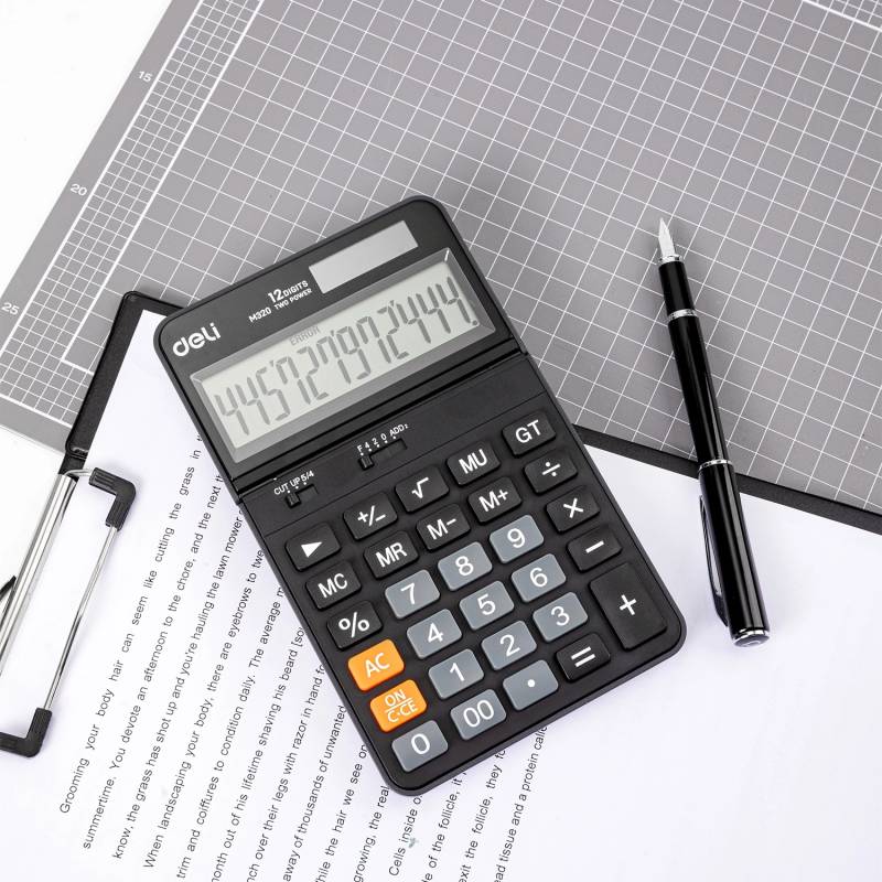 - Калькулятор настольный Deli, EM320, 12 символов, 2 источника питания, пластиковый, черный