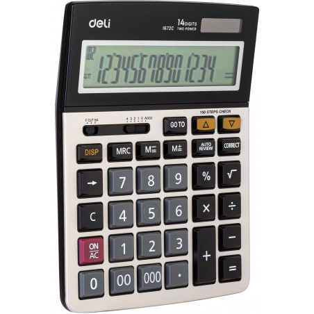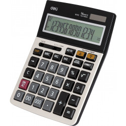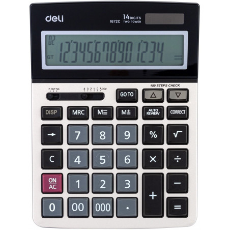 - 14-разрядный калькулятор в серебристом корпусе. Имеет стильный, современный внешний вид. Популярен как среди бухгалтеров, так и среди продавцов, банковских и офисных сотрудников. Изготовлен из противоударного пластика и отличается большим дисплеем с увели