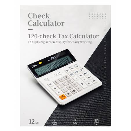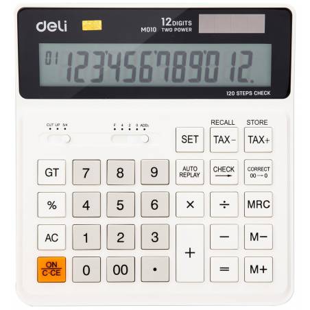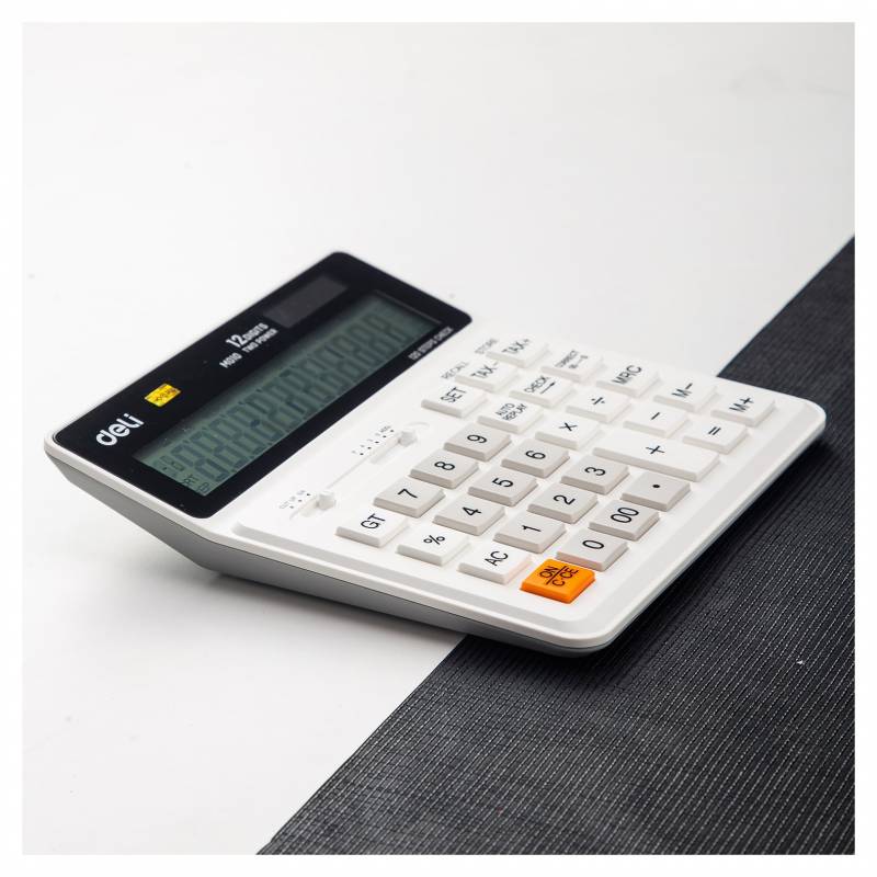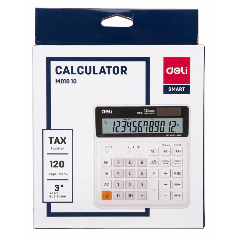 Калькулятор бухгалтерский Deli EM01010 белый 12-разр.