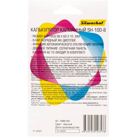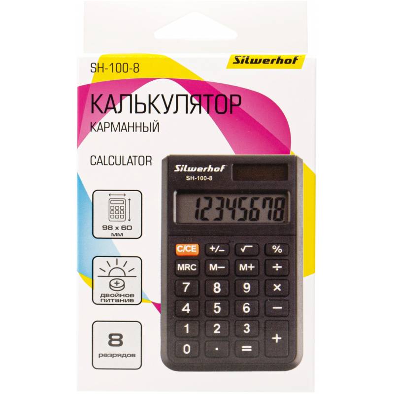 Калькулятор карманный Silwerhof SH-100-8 черный 8-разр.