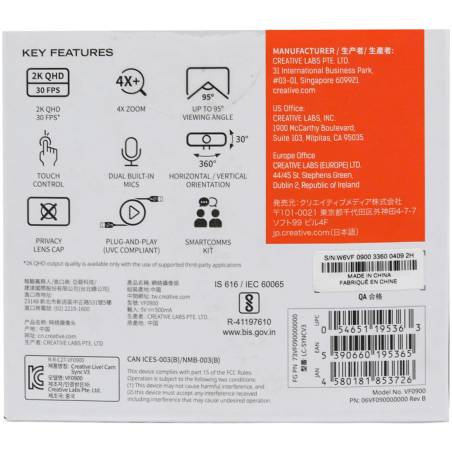 Камера Web Creative Live! Cam SYNC V3 черный 5Mpix (2560x1440) USB2.0 с микрофоном (73VF090000000)