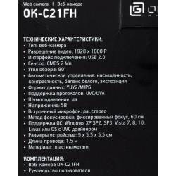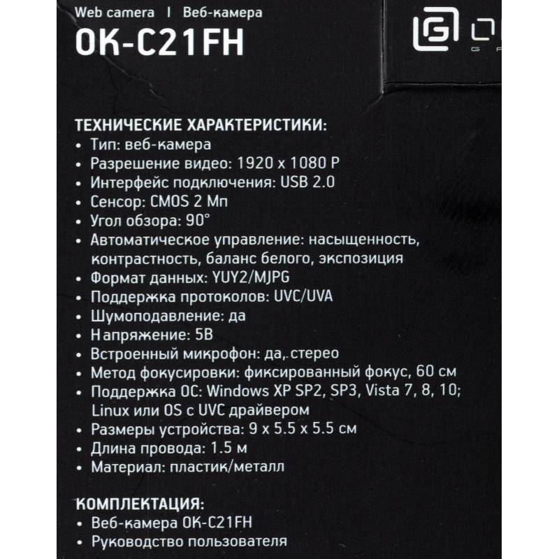 Камера Web Оклик OK-C21FH черный 2Mpix (1920x1080) USB2.0 с микрофоном