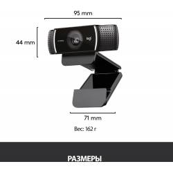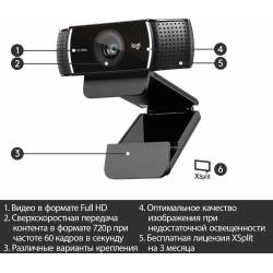Камера Web Logitech Pro Stream C922 черный 3Mpix (1920x1080) USB2.0 с микрофоном (960-001089)