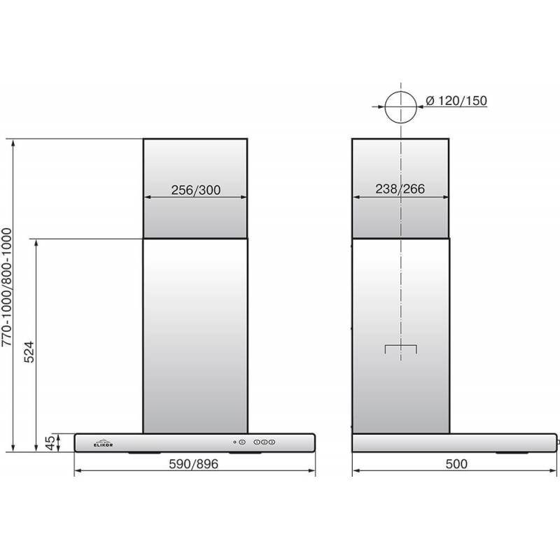 - Высота вытяжки (мин/макс)