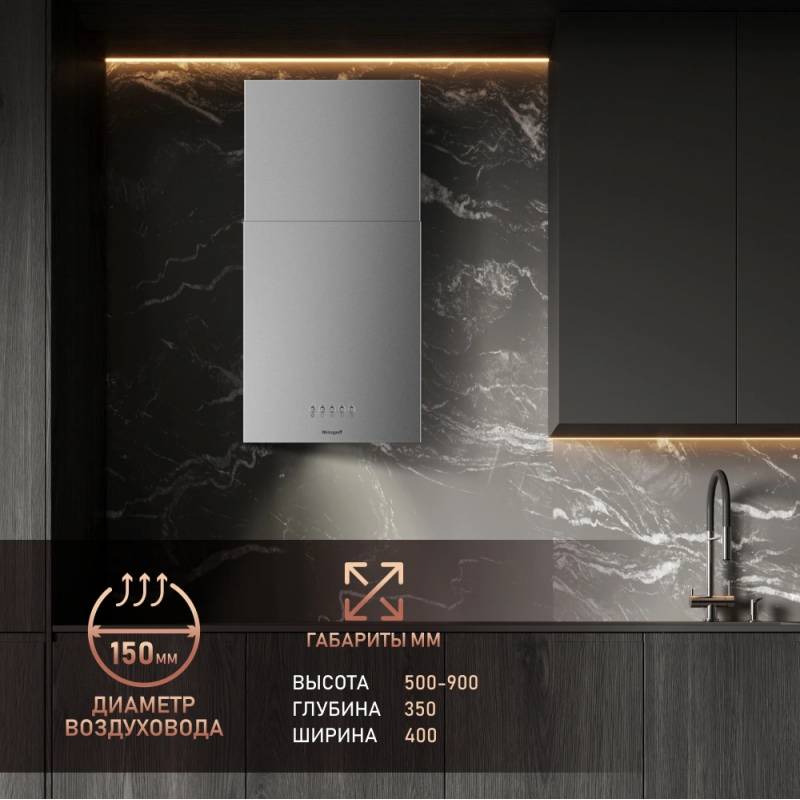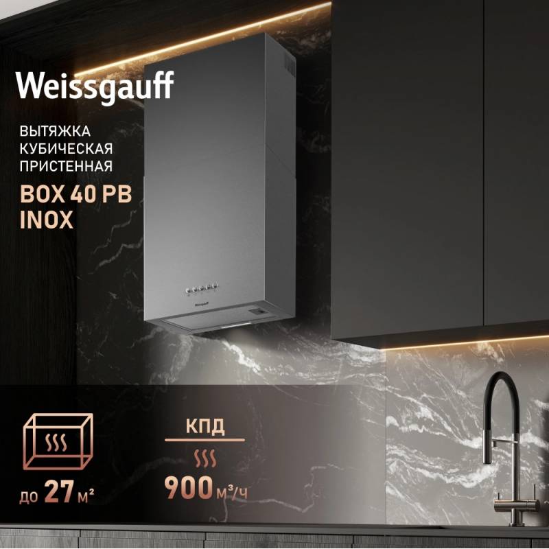 Вытяжка каминная Weissgauff Box 40 PB нержавеющая сталь управление: кнопочное (1 мотор)