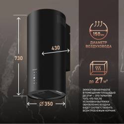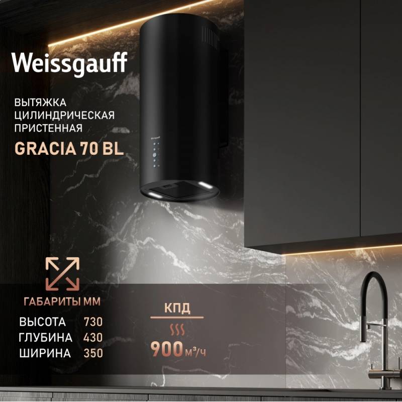 Вытяжка каминная Weissgauff Gracia 70 BL черный управление: кнопочное (1 мотор)