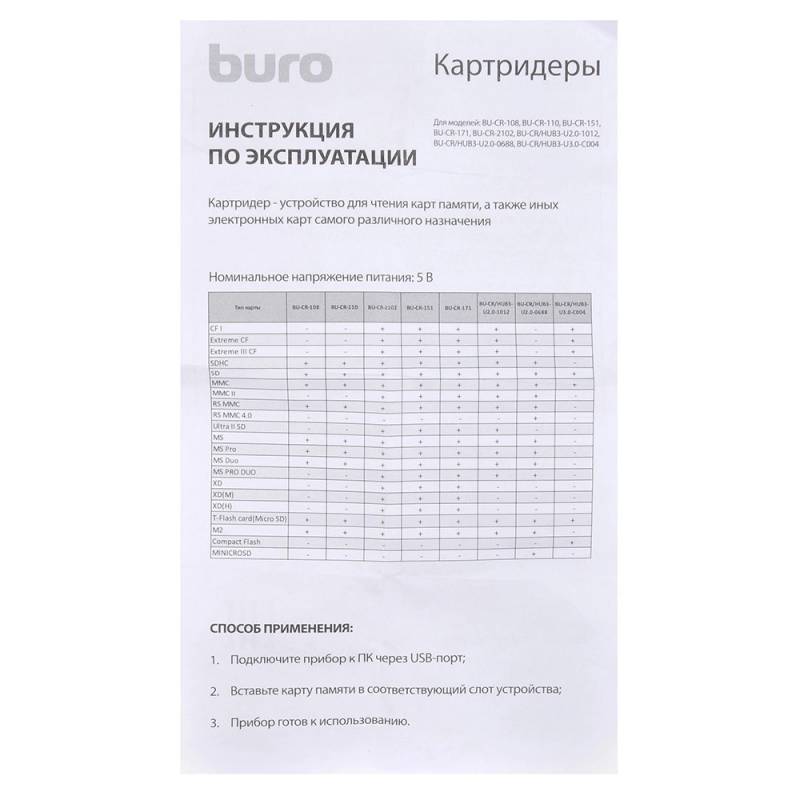 Устройство чтения карт памяти USB2.0 Buro BU-CR-151 черный