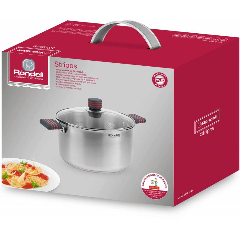 Кастрюля Rondell Stripes RDS-1281 5.8л. d24см (с крышкой) стальной