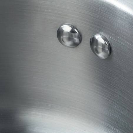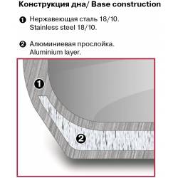- Материал: высококачественная нержавеющая сталь 18/10. Технология: тройное вштампованное, а затем вплавленное дно без воздушных полостей. Материал крышки: термостойкое стекло. Аксессуары: из бакелита с покрытием Soft Touch. Преимущества: