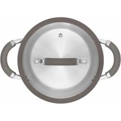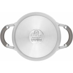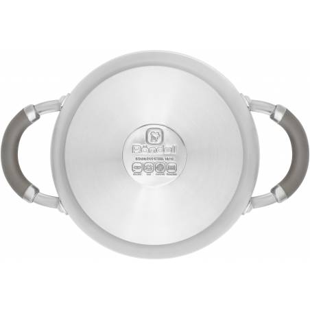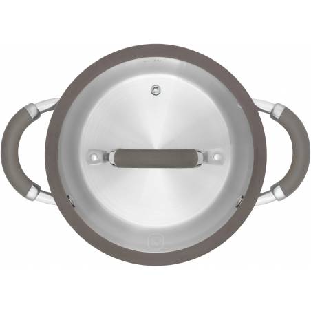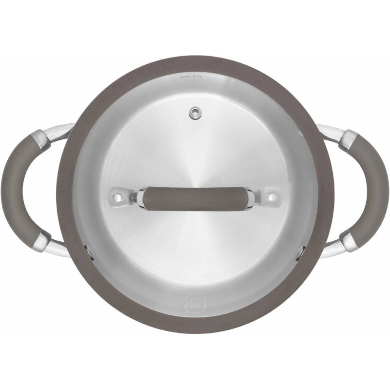 - Технология: тройное вштампованное, а затем вплавленное дно без воздушных полостей; Силиконовый обод позволяет крышке закрываться бесшумно, предотвращает сколы при падении. Оригинальная конструкция ручек - комбинация стали и силикона. Преимущества: