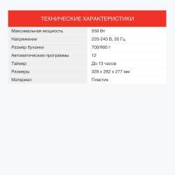 - выбор цвета корочки, поддержание температуры, регулировка веса выпечки, таймер отсрочки старта