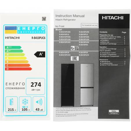 Холодильник Hitachi R-B410PUC6 PSV 2-хкамерн. серебристый инвертер
