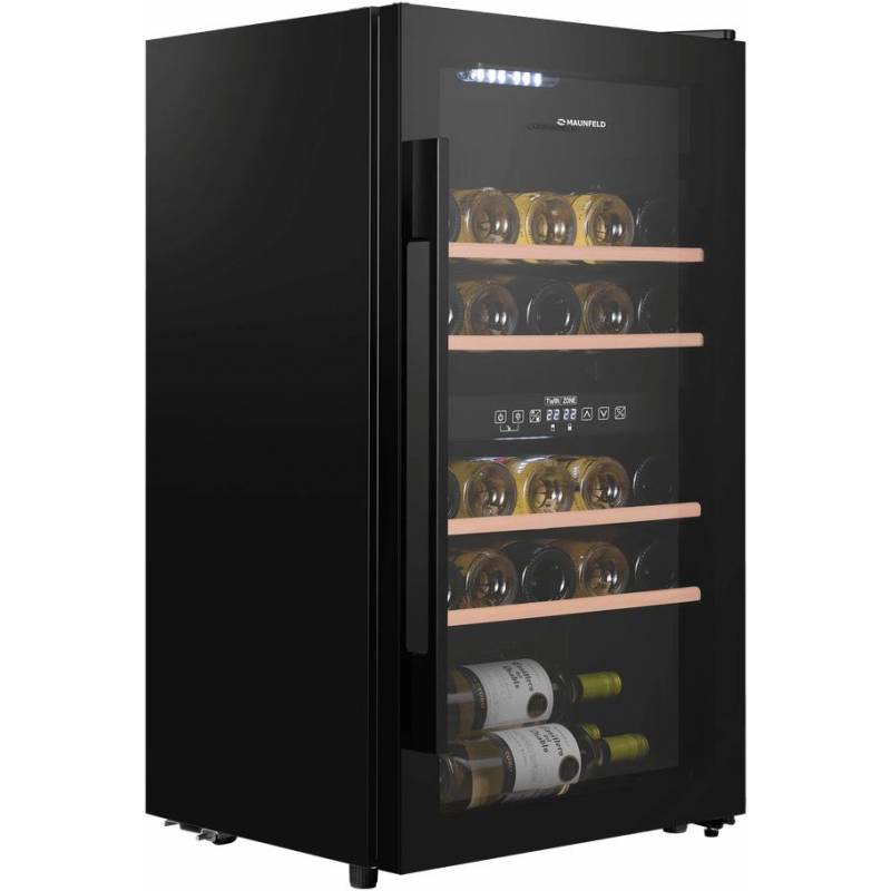 Винный шкаф Maunfeld MFWC-85D28 2-хкамерн. черный глянц.