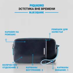 - Практичное портмоне с двумя отделениями и ремешком из самой популярной коллекции Piquadro Blue Square. Выполнено из гладкой телячье кожи с фирменным голубым кантом. Имеет два отделения и внешний карман. Отличный вариант на "каждый день" для переноски води