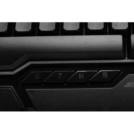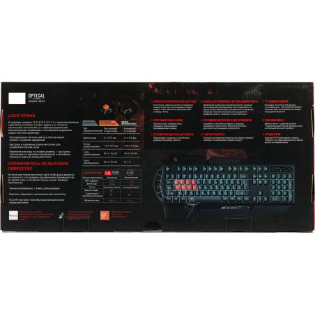 - тип клавиш – мембранные (частично механика), 8 игровых клавиш (эти клавиши без подсветки), время отклика – 0.2 мс., прорезиненные ножки. Технология: Light Strike. Оптические переключатели: QWER/ASDF.