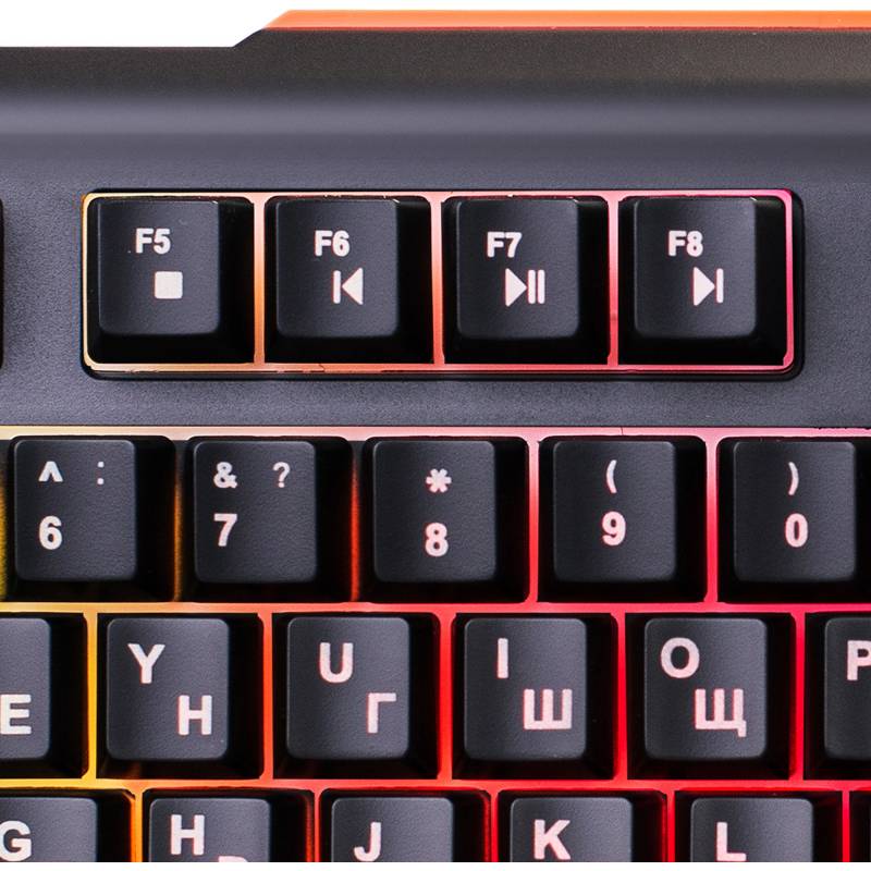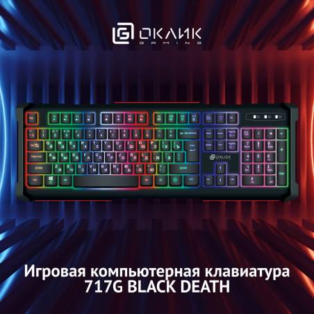 Клавиатура Оклик 717G BLACK DEATH черный/оранжевый USB Multimedia for gamer LED (476395)