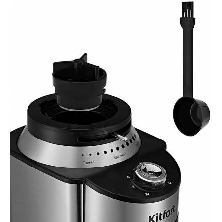 - Жерновая кофемолка Kitfort КТ-770 предназначена для помола кофейных зёрен. Она оснащена плоскими металлическими жерновами из стали. Благодаря чему, при помоле, кофе не перегревается и не меняет свой вкус.