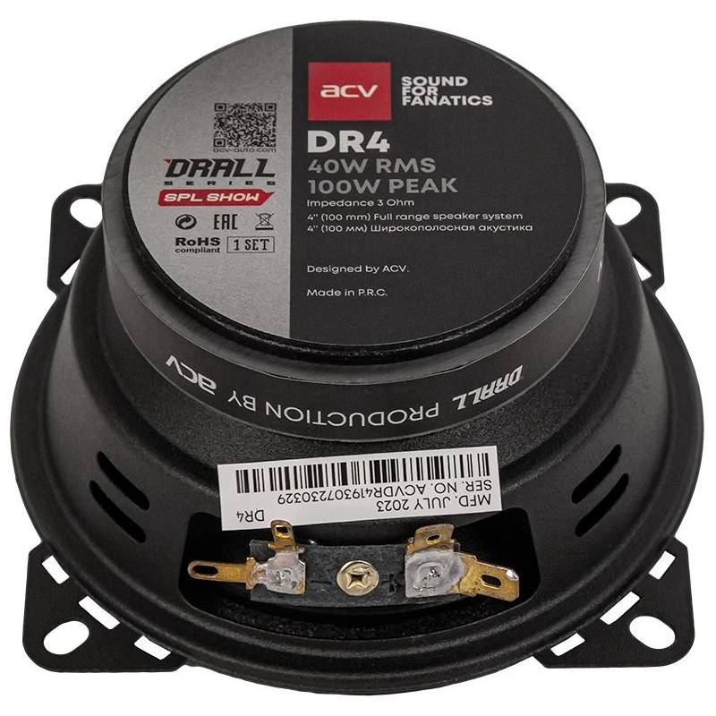 Колонки автомобильные ACV DRALL DR4 (без решетки) 100Вт 94дБ 3Ом 10см (4дюйм) (ком.:2кол.) широкополосные однополосные