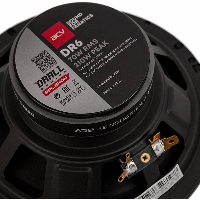 Колонки автомобильные ACV DRALL DR6 (без решетки) 210Вт 96дБ 3Ом 16см (6.5дюйм) (ком.:2кол.) широкополосные однополосные