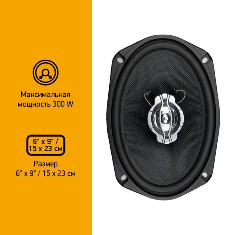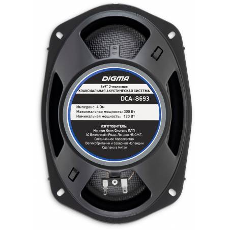 Колонки автомобильные Digma DCA-S693 (без решетки) 300Вт 86дБ 4Ом 15x23см (6x9дюйм) (ком.:2кол.) коаксиальные трехполосные
