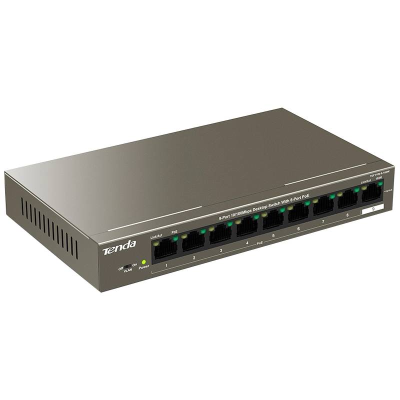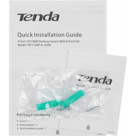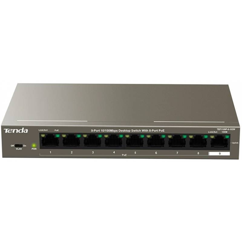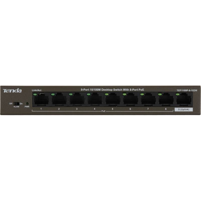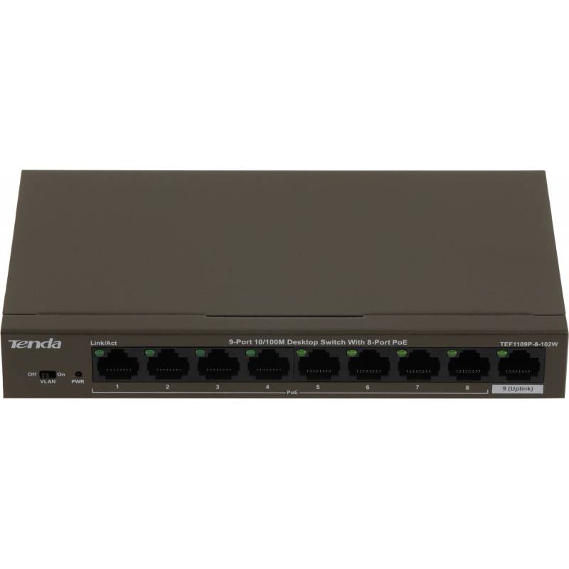 Коммутатор Tenda TEF1109P-8-102W (L2) 9x100Мбит/с 8PoE 92W неуправляемый
