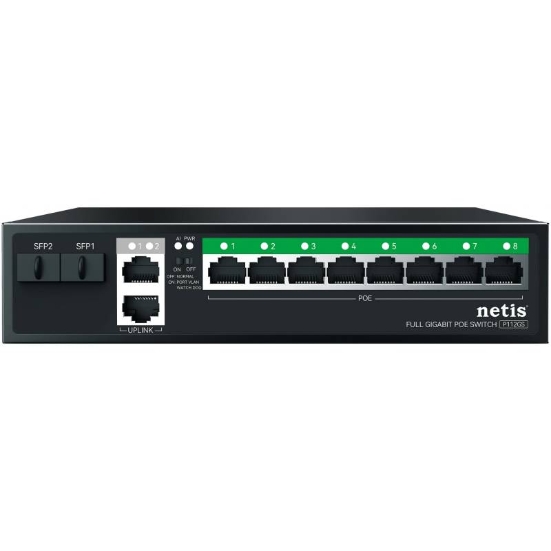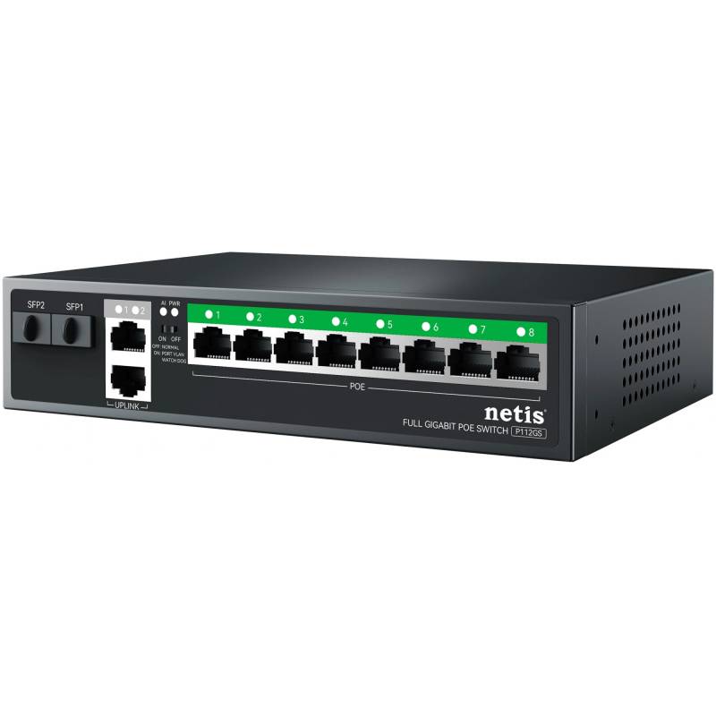Коммутатор Netis P112GS (L2) 10x1Гбит/с 2SFP 8PoE 120W неуправляемый