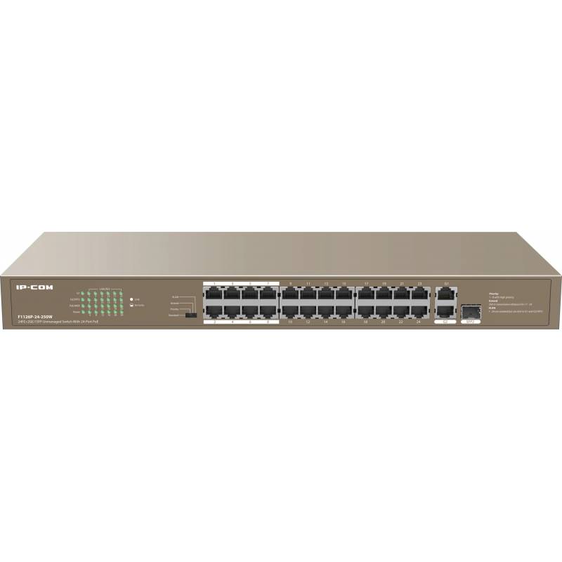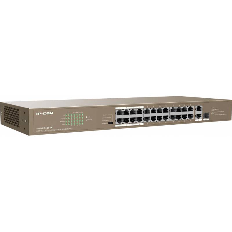 Коммутатор IP-Com F1126P-24-250W (L2) 24x100Мбит/с 2x1Гбит/с 1xКомбо(1000BASE-T/SFP) 1SFP 24PoE 230W неуправляемый