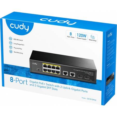 Коммутатор Cudy GS1010PS2 (L2) 10x1Гбит/с 2xКомбо(1000BASE-T/SFP) 2SFP 8PoE 120W неуправляемый
