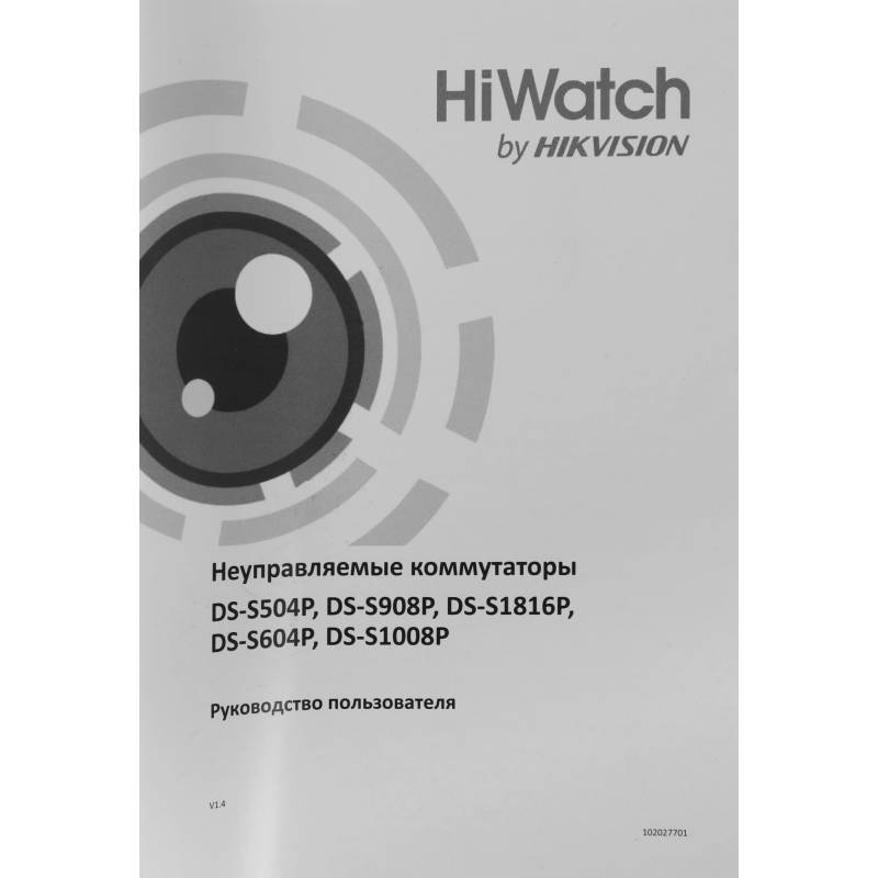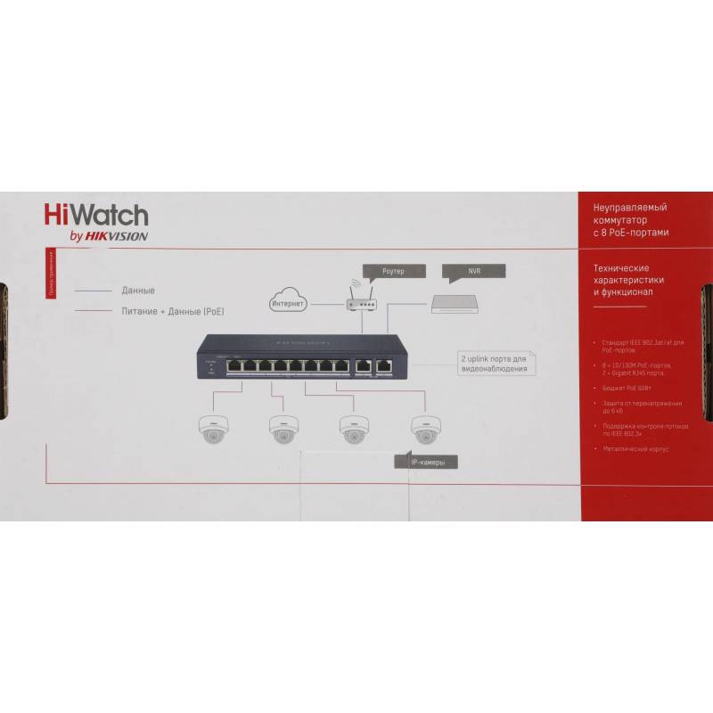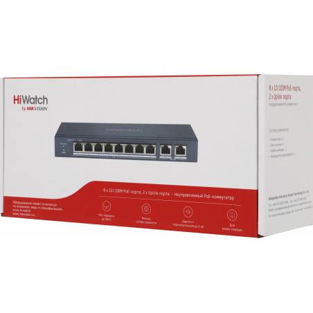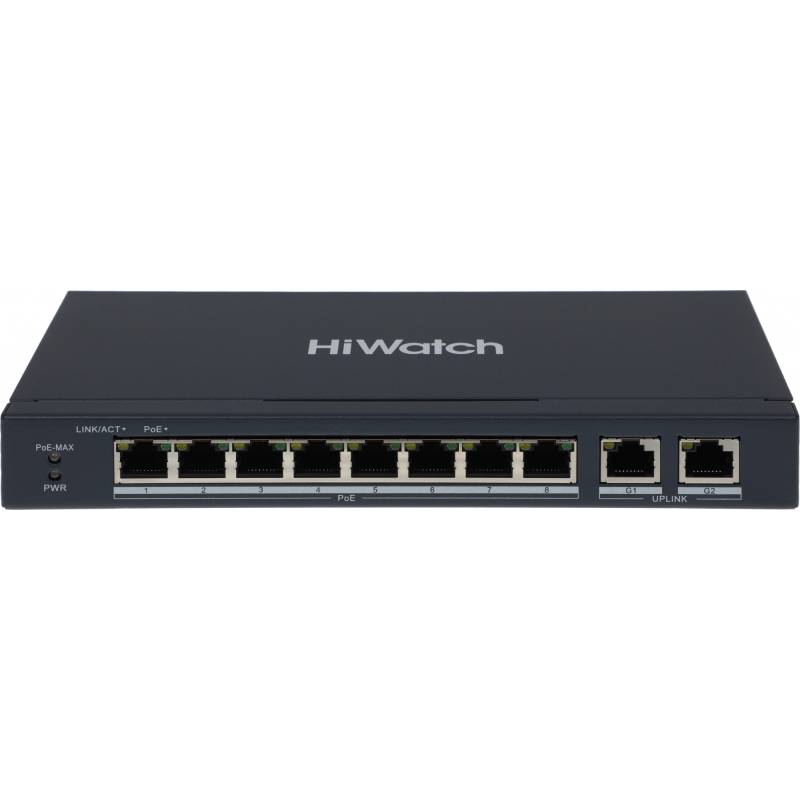 Коммутатор HiWatch DS-S1008P 8x100Мбит/с 2x1Гбит/с 8PoE+ 60W неуправляемый