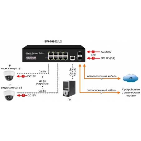 Коммутатор Osnovo SW-70802/L2 (L2) 8x1Гбит/с 2SFP управляемый
