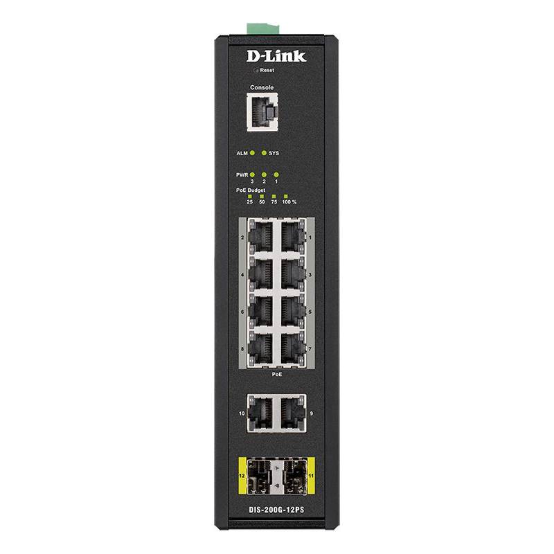 Коммутатор D-Link DIS-200G-12PS/A 10x1Гбит/с 2SFP 8PoE 240W управляемый