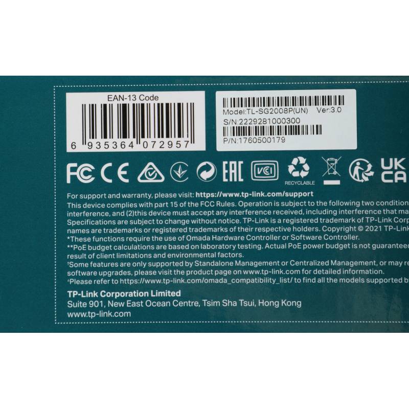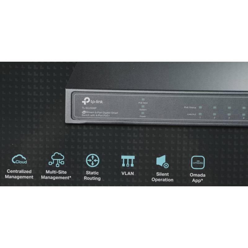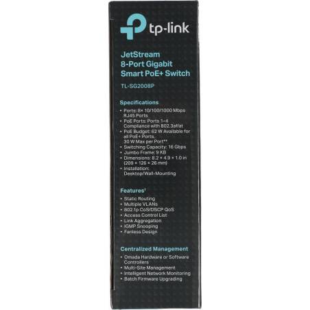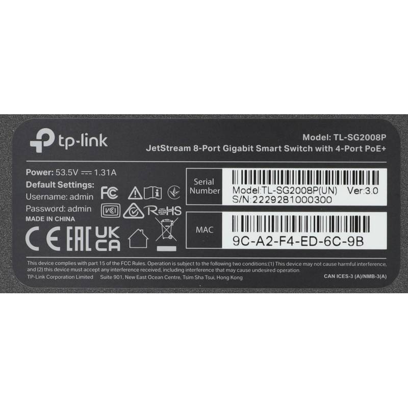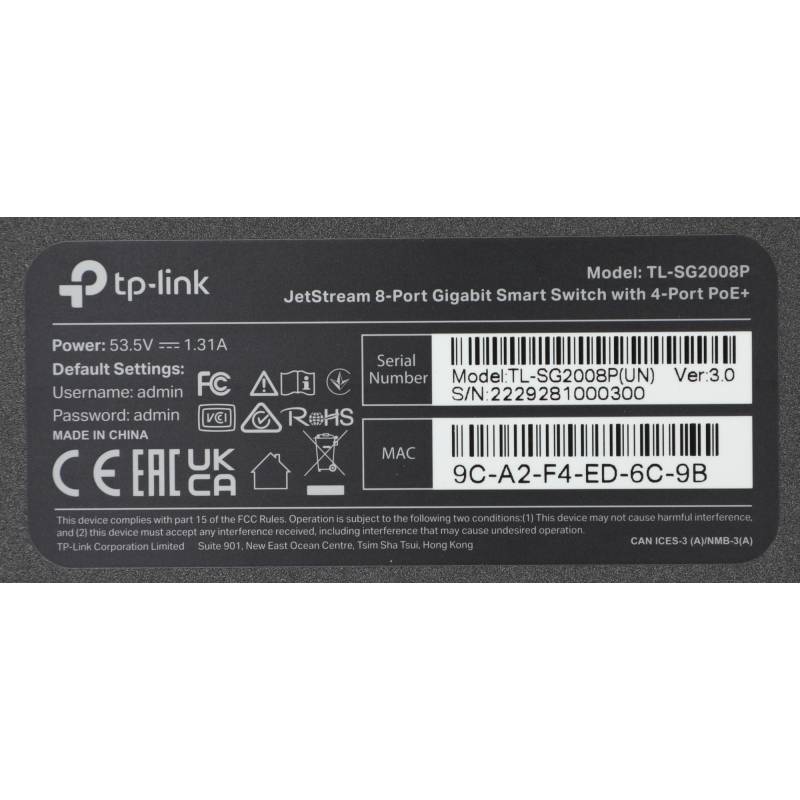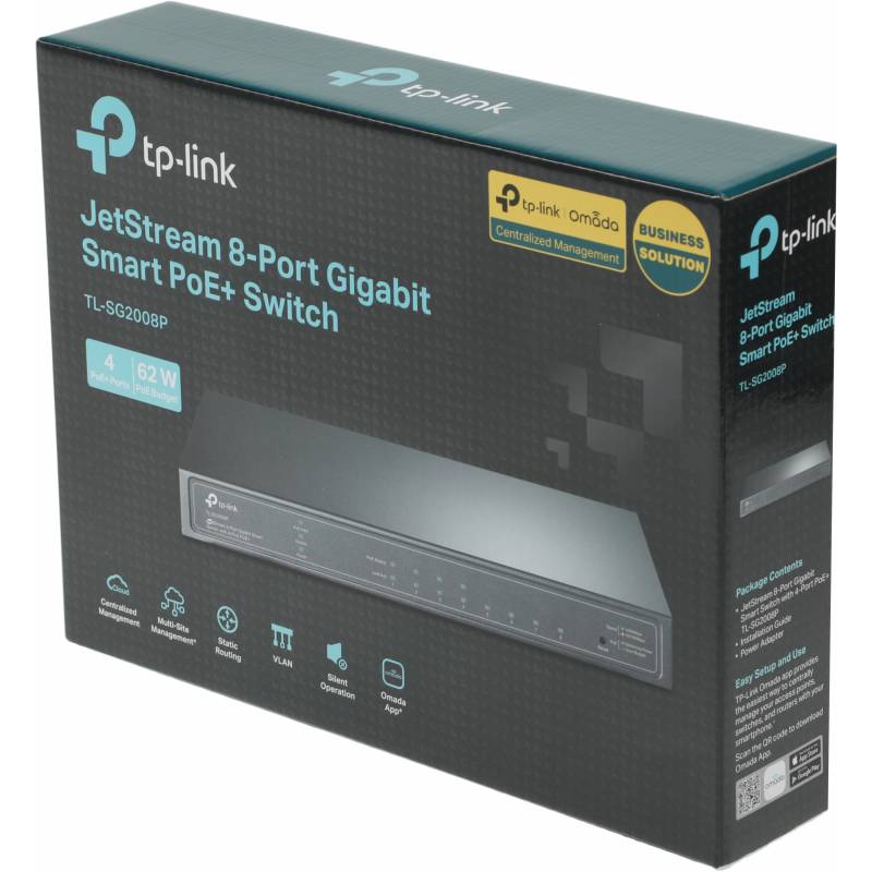 Коммутатор TP-Link JetStream SG2008P (L2) 8x1Гбит/с 4PoE+ 62W управляемый