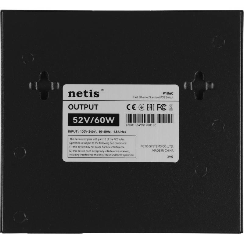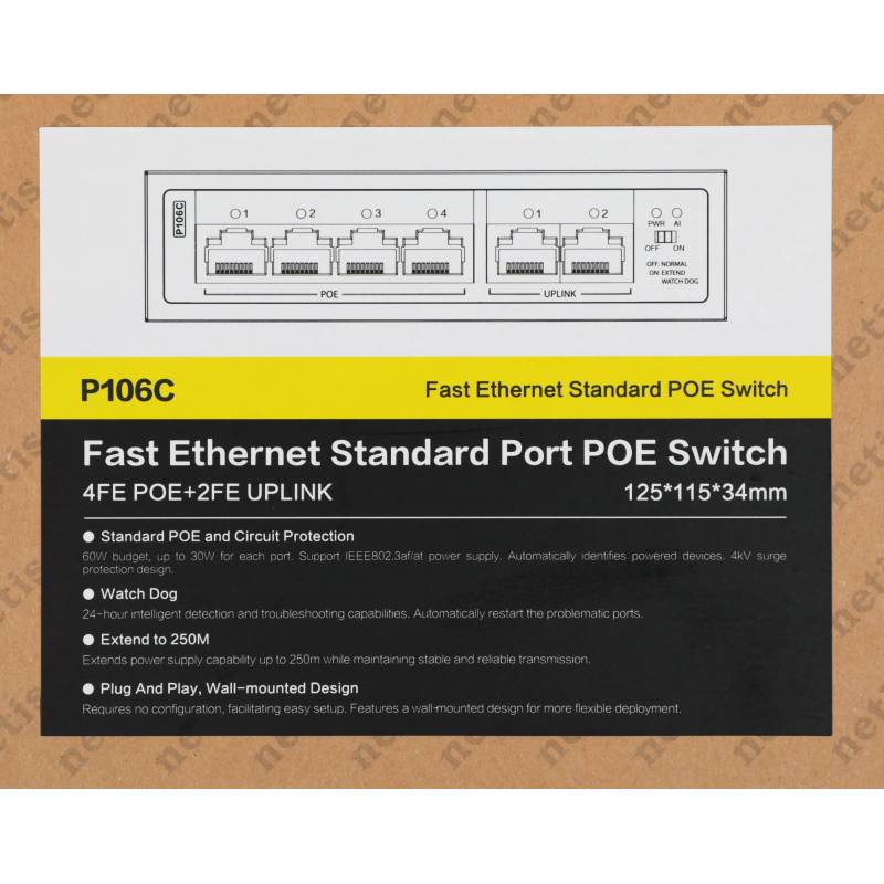 Коммутатор Netis P106C (L2) 6x100Мбит/с 4PoE+ 60W неуправляемый