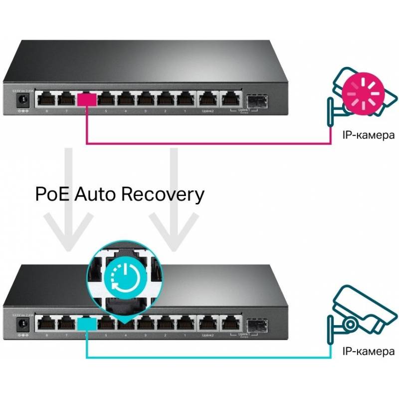 Коммутатор TP-Link TL-SG1210MPE (L2) 10x1Гбит/с 1xКомбо(1000BASE-T/SFP) 8PoE+ 123W настраиваемый