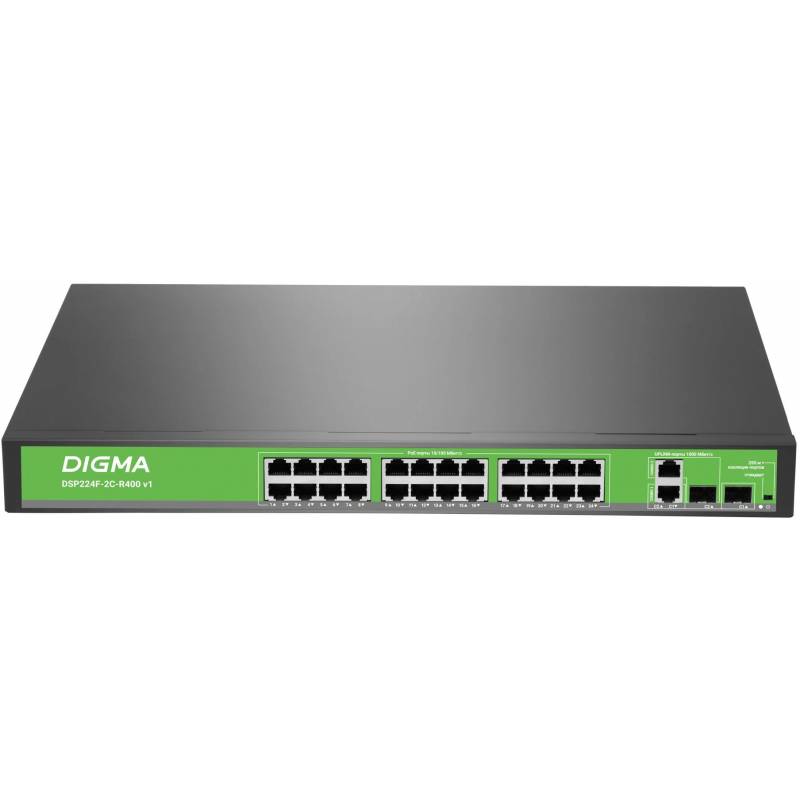 Коммутатор Digma DSP224F-2C-R400 DSP224F-2C-R400 V1 (L2) 24x100Мбит/с 2xКомбо(1000BASE-T/SFP) 24PoE 24PoE+ 400W неуправляемый