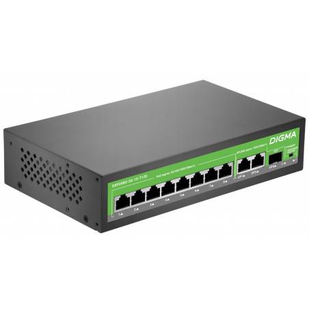 Коммутатор Digma DSP208G-2G-1S-T120 (L2) 10x1Гбит/с 1SFP 8PoE 8PoE+ 120W неуправляемый