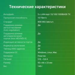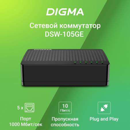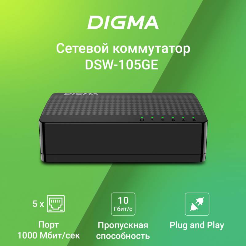 Коммутатор Digma DSW-105GE DSW-105GEV2 (L2) 5x1Гбит/с неуправляемый