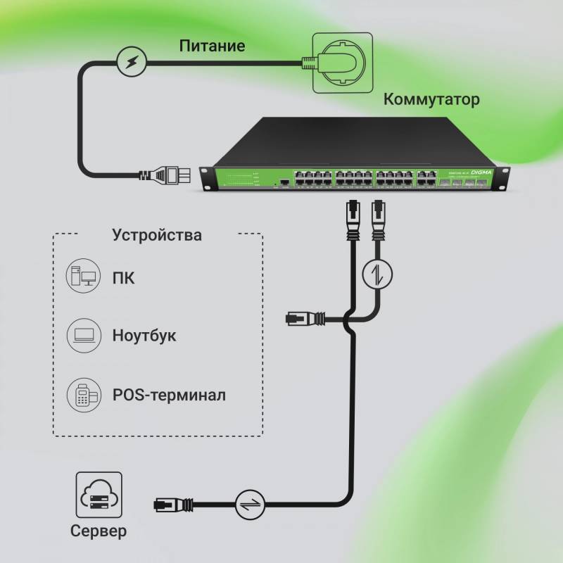 Коммутатор Digma DSW724G-4C-R (L2+) 24x1Гбит/с 4xКомбо(1000BASE-T/SFP) управляемый