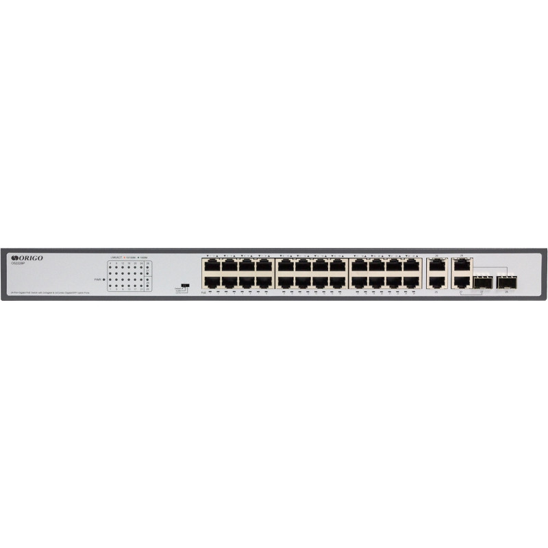 Коммутатор Origo OS2228P/370W OS2228P/370W/A1A 28x1Гбит/с 2xКомбо(1000BASE-T/SFP) 2SFP 24PoE+ 370W неуправляемый