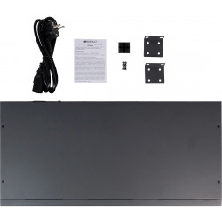 - Коммутатор OS2228P/370W, кабель питания, комплект для установки в 19-дюймовую стойку, винты, резиновые ножки, краткое руководство по установке.