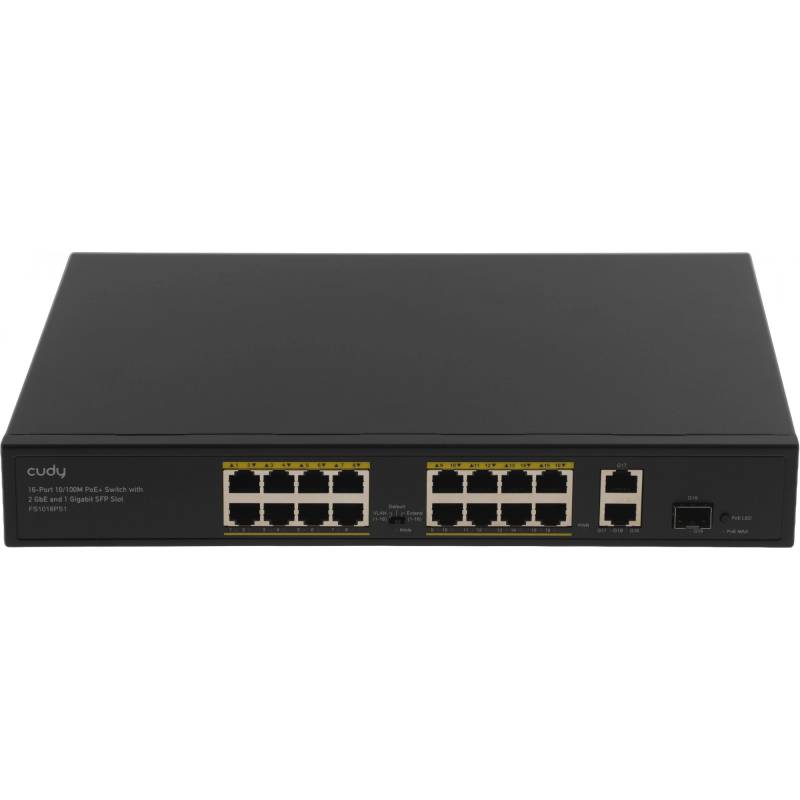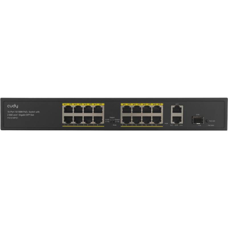 Коммутатор Cudy FS1018PS1 (L2) 16x100Мбит/с 2x1Гбит/с 1SFP 16PoE+ 200W неуправляемый