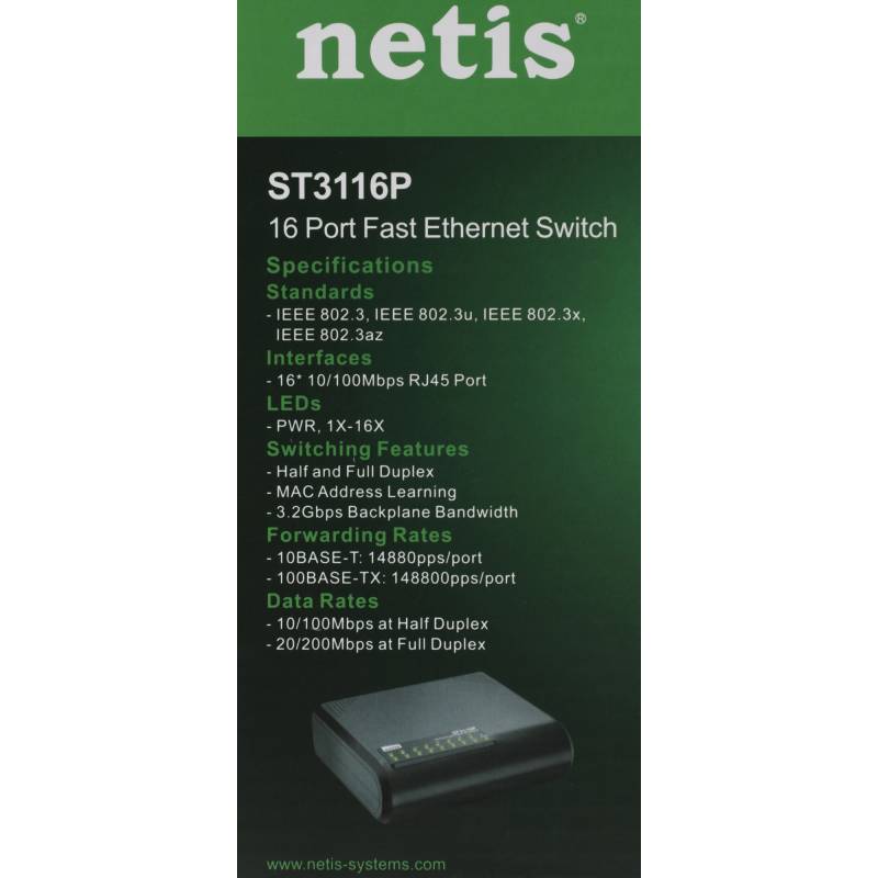 Коммутатор Netis ST3116P (L2) 16x100Мбит/с неуправляемый