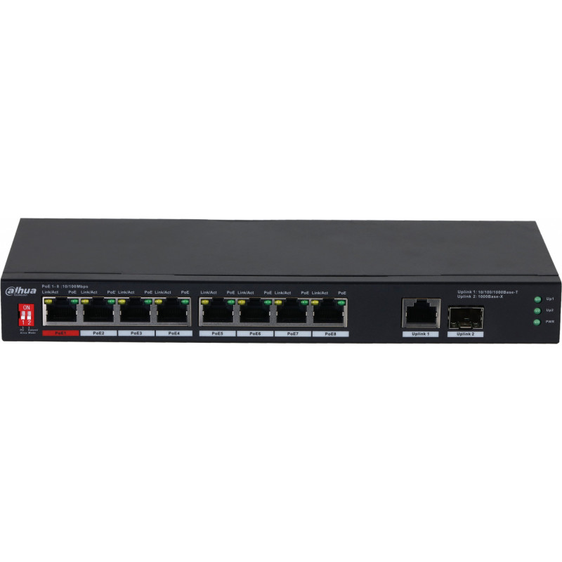 Коммутатор Dahua DH-PFS3110-8ET1GT1GF-96 (L2) 8x100Мбит/с 1x1Гбит/с 8PoE 96W неуправляемый