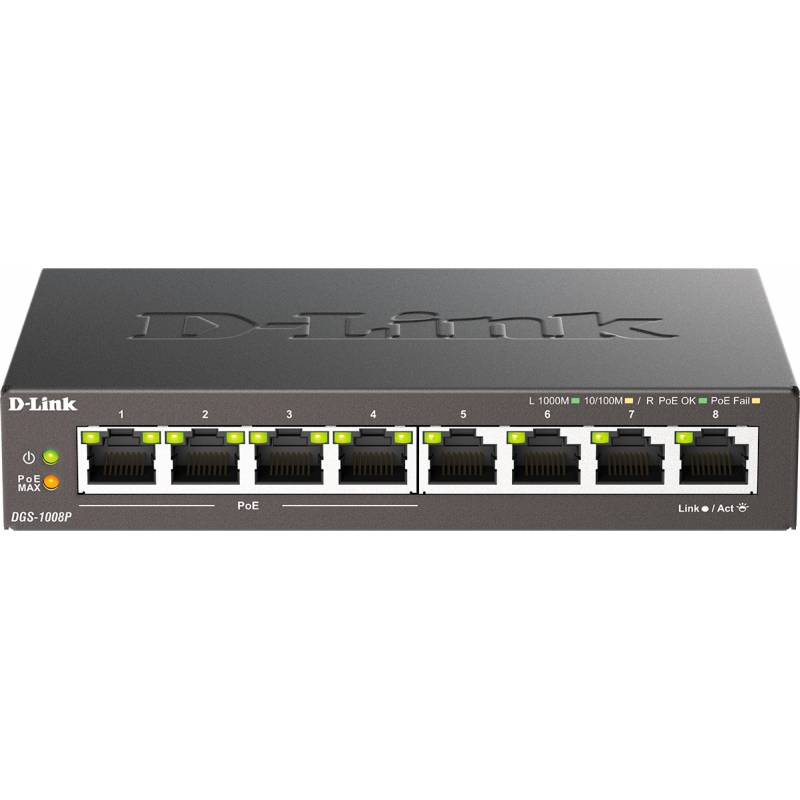 Коммутатор D-Link DGS-1008P DGS-1008P/F3A (L2) 8x1Гбит/с 4PoE+ 60W неуправляемый