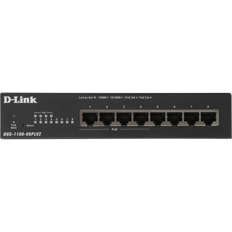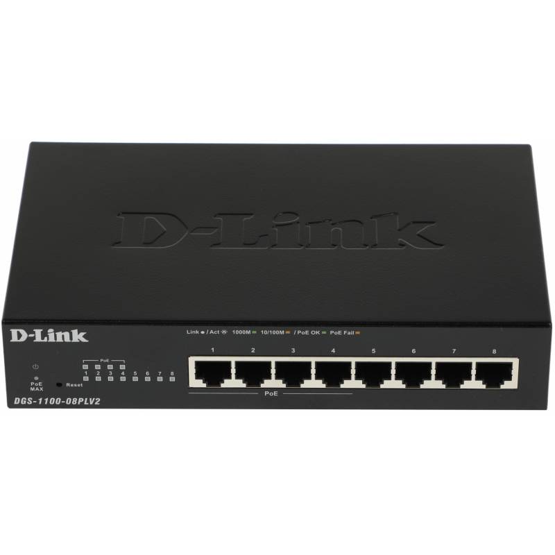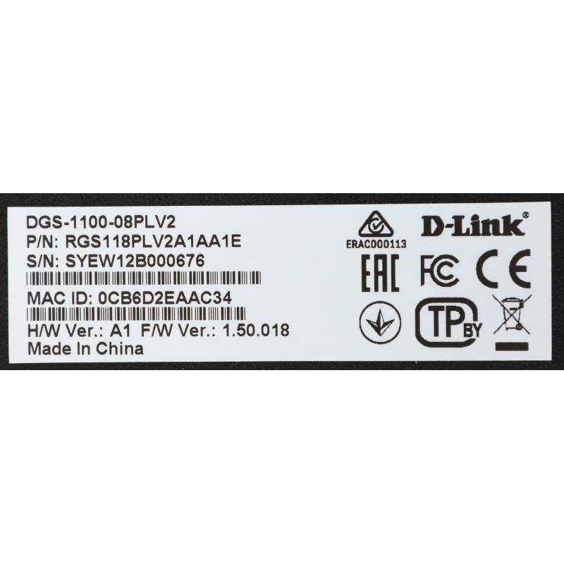 Коммутатор D-Link DGS-1100-08PLV2/A1A (L2) 8x1Гбит/с 4PoE+ 80W настраиваемый