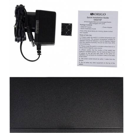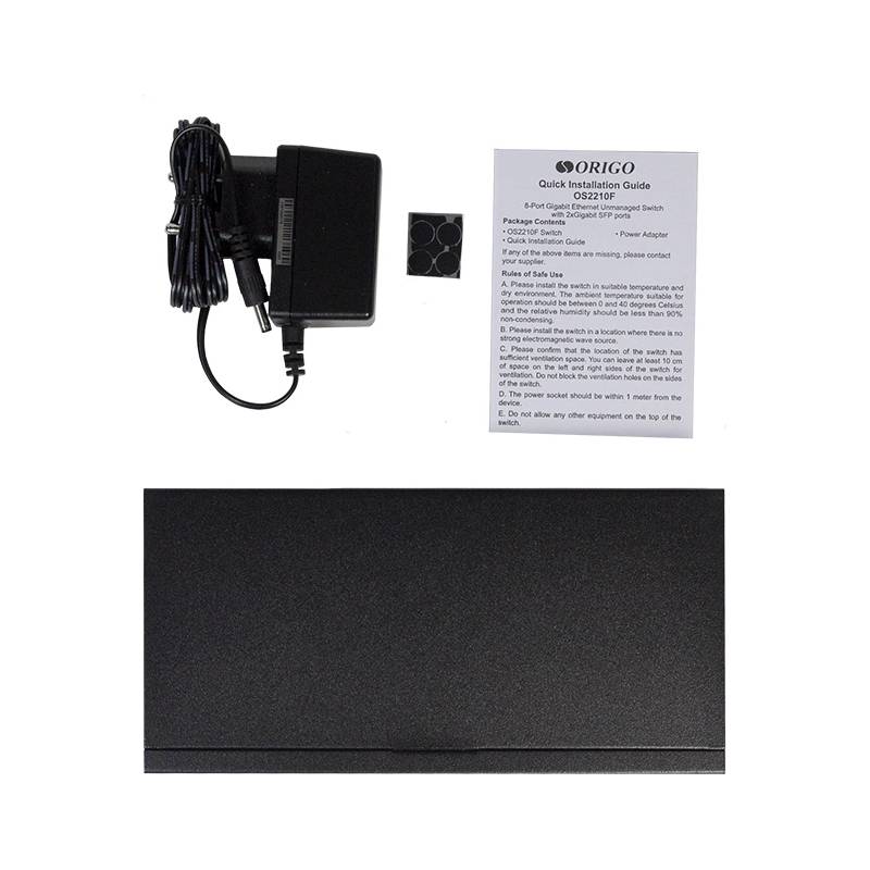 - Коммутатор OS2210F, адаптер питания, краткое руководство по установке