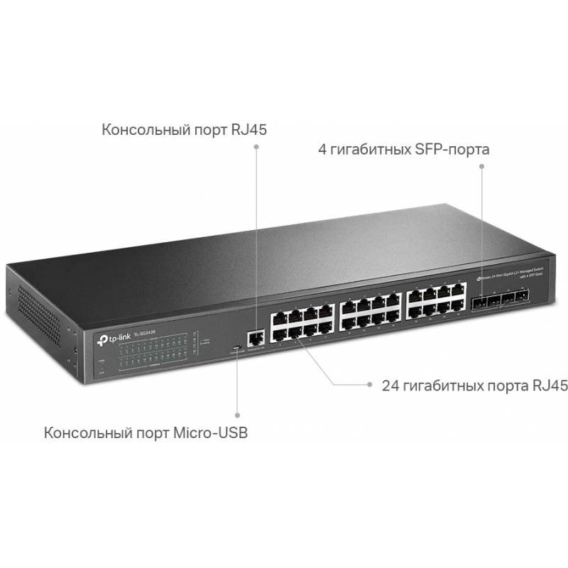 Коммутатор TP-Link JetStream SG3428 (L2+) 24x1Гбит/с 4SFP управляемый