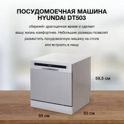 Посудомоечная машина Hyundai DT503 серебристый (компактная)